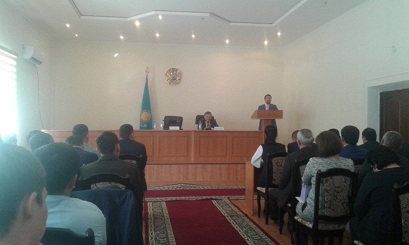 Кездесуді аудан әкімі Ж.Айтуаров  ашып жүргізді. Бұдан соң А.Бердалин сөз алып : «Кезкелген мемлекеттік қызметкер өзінің әдеп этикасын сақтау тиіс. Сөйлеген сөзі мен істеген ісіне жауап беруі керек. Елбасы өткен жылғы жолдауда елімізде мемлекеттік аппараттың біліктілігін ерекше тоқталған ды. Сондықтан мемлекеттік қызметшінің төл міндеті ол халыққыа адал  қызмет ету. Биылғы жылдың өзінде елеміз бойынша  1500 ден астам сыбайлас жемқорлық фактісі тіркелген. 100 млрдатан астам ақша бюджетке қайтарылды. Міне біздің жұмысымыздың жемісі осында жатыр.» деді.