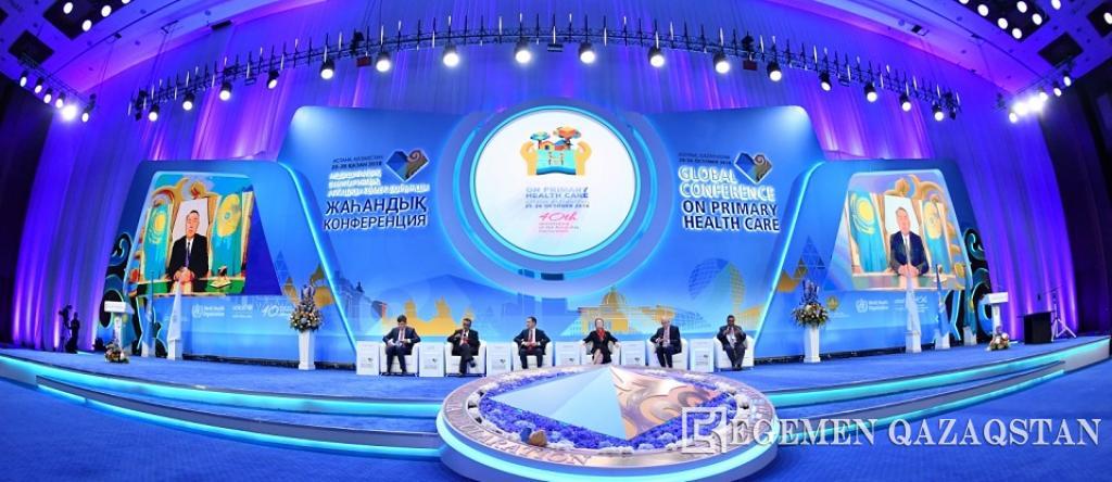 Дүниежүзілік денсаулық сақтау ұйымына мүше 140-тан аса елден 1500-ге жуық өкіл қатысқан басқосуға бейне-құттықтау жолдаған Мемлекет басшысы Нұрсұлтан Назарбаев Астана декларациясын қабылдау әлемдегі денсаулық сақтау саласы үшін маңызды кезең болатынын айтып, бұл жаһандық деңгейде адамдардың денсаулығын жақсартуға үлес қосатын бағдарламалық құжат екенін жеткізді. «Осыдан 40 жыл бұрын әлем жұртшылығы Алматы қаласына жиналып, Дүниежүзілік денсаулық сақтау ұйымына мүше мемлекеттер алғашқы медициналық-санитарлық көмек жөніндегі Алматы декларациясын қабылдады. Онда халықты санитарлық бағытта ақпараттандыру, ана мен баланың денсаулығын қорғау, аурулардың алдын алу, оның ішінде вакцинация мен дәрі-дәрмектермен қамтамасыз ету секілді маңызды қағидаттар болды. Одан бері әлемнің денсаулық сақтау бағыты осы негізгі бағыттар бойынша дамып келе жатыр», деді Президент.