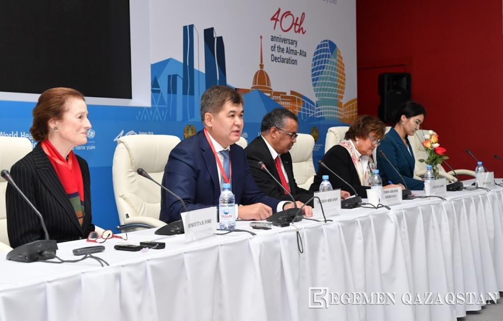 Алматы декларациясы қабылданғалы бері Қазақстанда ғана емес, әлемде де көптеген өзгерістер орын алғанын айтқан Денсаулық сақтау министрі Елжан Біртанов дүниежүзі бойынша созылмалы аурулардың жиілеп кеткенін жеткізді. «Бұған әлеуметтік факторлар да әсерін тигізіп жатыр. Біз осы мәселені көтеріп, дүние жүзінің медицина саласының, алғашқы медициналық көмектің келешегінің даму бағыттарын айқындау үшін өткен жылы Женева қаласындағы Дүниежүзілік денсаулық ассамблеясында бастама көтердік. Алматы декларациясы негізінде жаңа медициналық-санитарлық алғашқы көмекті дамыту декларациясын қабылдауды ұсындық», деді Е.Біртанов.
