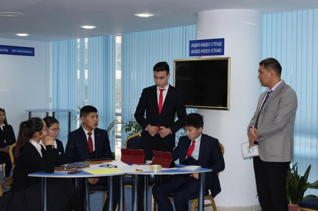 Ашық сабақ барысында оқушылар Елбасы Н.Ә.Назарбаевтың «Ұлттық тәрбие моделі: Рухани жаңғыру» бағдарламасын іске асыру және «Ұлы даланың жеті қыры» атты мақаласындағы келелі мәселелерді 3 топқа бөліну арқылы талдап, өзіндік ерекшеліктері мен еліміздің мәдени және рухани дамуы үшін жеті тарихи жайтқа сүйенген алты ірі жоба жөнінде өз пікірлерін білдірді. Оқушылар Елбасының «Ұлы даланың жеті қыры» атты мақаласын заманауи түрде жаңаша әдістермен іске асыру қажет екендігін алға тартады.