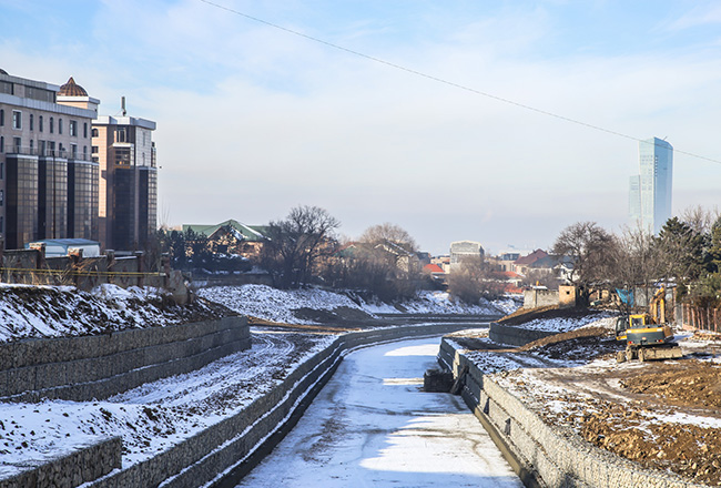 Қазіргі кезде ұзындығы 1,8 км болатын аумаққа тірек қабырғаларын орнату, өзен түбіне темірбетон төсеу және техникалық жолдарды абаттандыру жұмыстарының 65 пайызы аяқталған. Атқарылған шаралар учаскеде су ауқымын күнделікті өткізу қуатын 10 есеге дейін ұлғайтпақ.