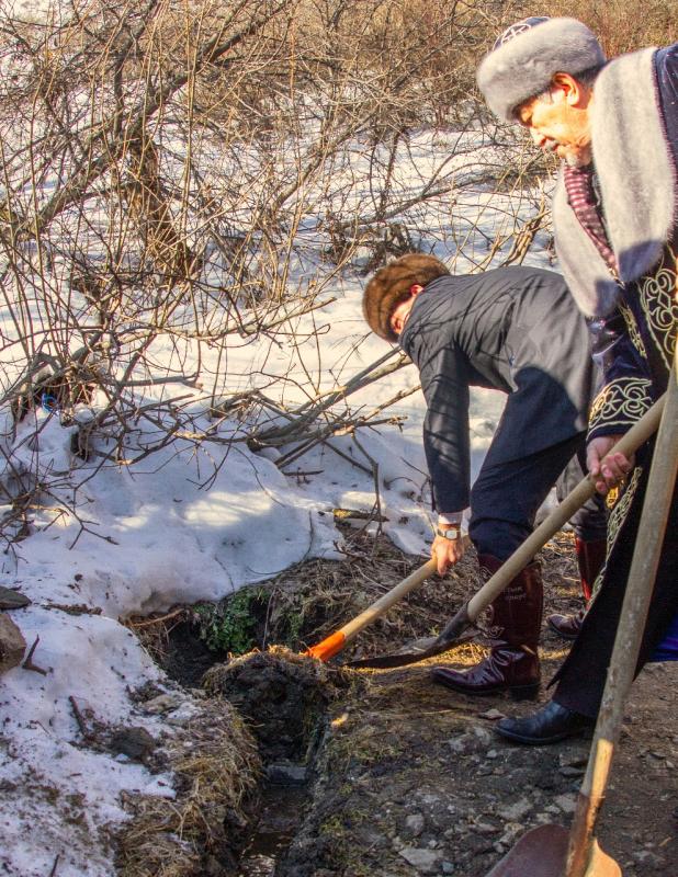 Таңертемен қала әкімі Жақсылық Омар бастаған, оқалы шапан киген ақсақалдар қостаған шағын топ шаһар іргесіндегі Шешек асуы маңындағы бұлақ басына жиналды. Құр жиналған жоқ, бабалардан қалған бағлан дәстүріміз «бұлақ көзін ашу» рәсімін қайта жандандырып, қолдарына күрек алып, тұманың көзін ашты. Бұлақ басына жиылған жұрт ақсақалдың берген батасынан кейін тұма суынан дәм татты. «Бабаларымыз әр көктем сайын Наурыз мерекесінде жабылып қалған бұлақ көздерін ашып, суынан дәм татқан. Халқымызда «Бұлақ көрсең, көзін аш» деген тамаша сөз бар. Осы дәстүрді жыл сайын жалғастырып, жабылып қалған бұлақ көздерін ашып отыру ойымызда бар. Бұлақтың маңын абаттандырып, орындықтар орнатамыз», - дейді бұлақ басына ұлттық киіммен келген қала әкімі Ж.Омар.