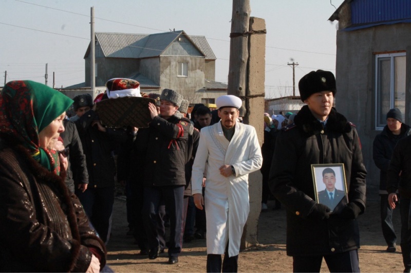 Қаралы жиында қызметкерінің жоғары адамгершілік қасиеттерін еске алған Полиция департаментінің бастығы Аян Дүйсембаев: «Менің өзімнің қызмет еткен бірнеше жылдардың ішінде алғаш рет жас жауынгерімнен айырылып тұрмын. Менің жауынгерім қан майданда емес, адамды ажалдан арашалау кезінде Жайықтың асау толқынында қаза болды. Қош бол, менің жас жауынгерім!» - деп толқи сөйледі.