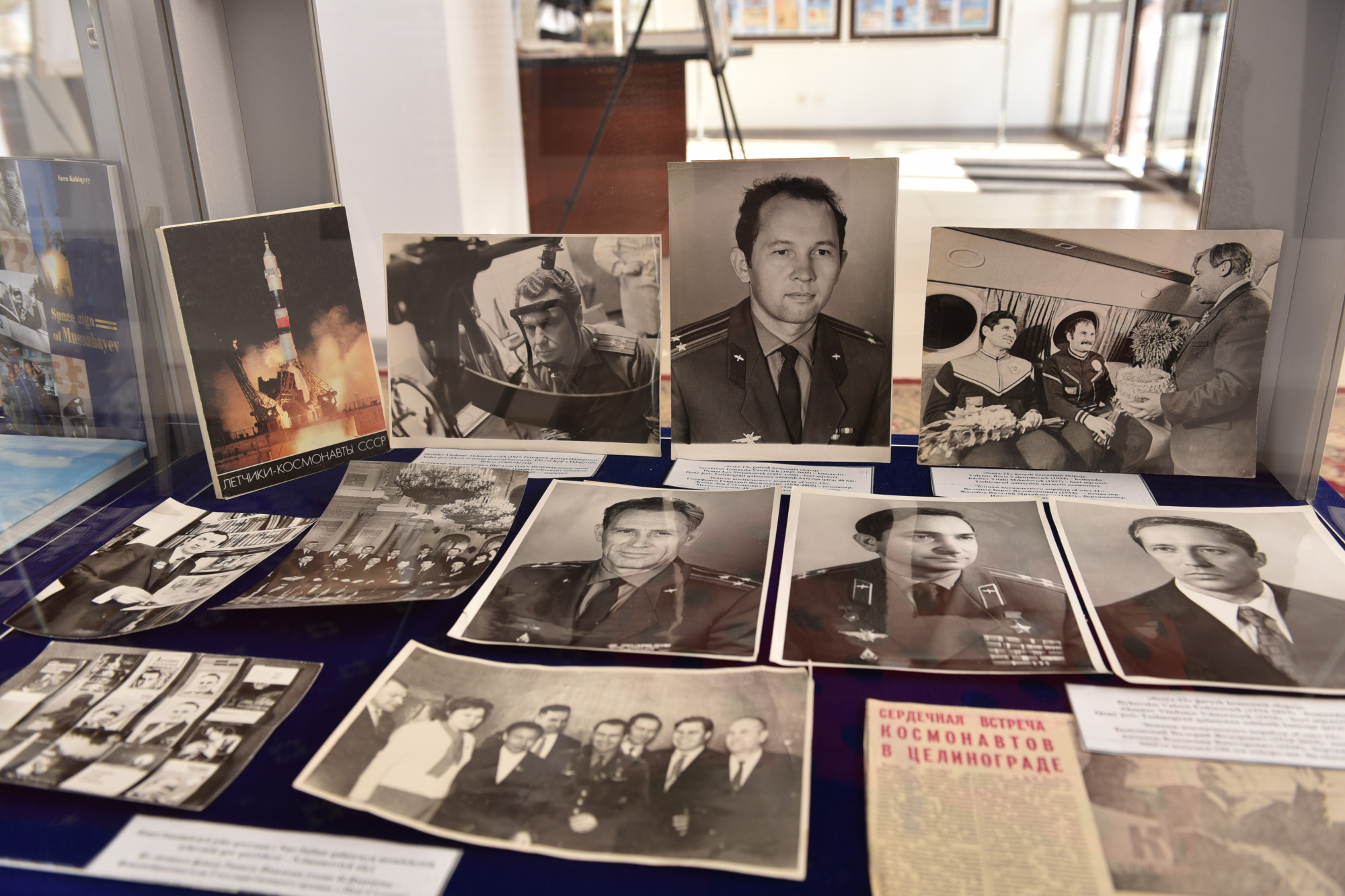 Экспозицияда белгілі кеңестік және қазақстандық ғарышкерлердің фотосуреттері, ғарышқа ұшулар туралы ескі газеттердің материалдары, жердің алғашқы жасанды серігінің макеті қойылған. Филателист Валерий Семенов Юрий Гагариннің алғашқы ұшуына арналған маркалардың бірегей топтамасын ұсынды. Көрмені алғашқы болып астаналық мектеп оқушылары мен ЖОО студенттері тамашалады.