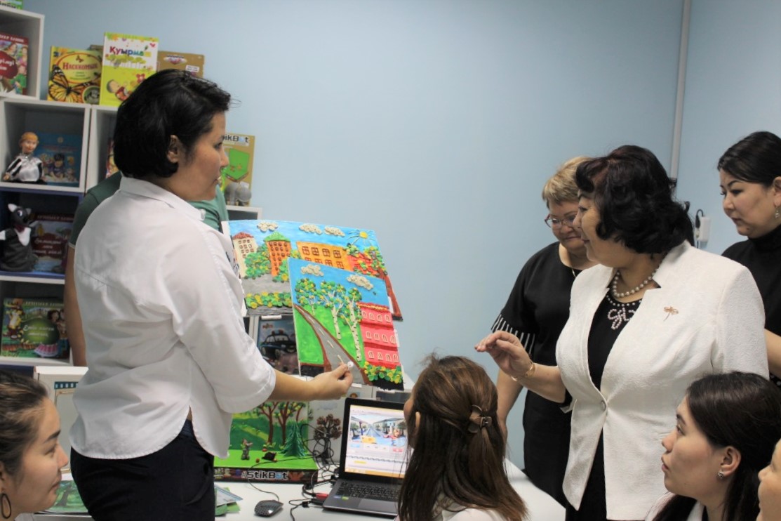 №54 балабақшаның орынбасары Зариякүл Иманбаева қонақтарға мульт-студияны, робототехника және арт-терапия кабинеттерін көрсетті.
