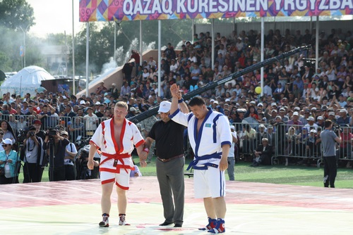 Биыл алғаш рет халықаралық фестиваль деңгейіне көтерілген шараның шымылдығы 15 маусымда қазақ күресінен өтетін Ырғызбай Досханаұлы атындағы Әлемдік Гран-при сайысымен түрілді. Біресе шақырайып, біресе бұлт бүркеген күн астында жан алысып, жан беріскен балуандар үш салмақта бабы мен бағын сынады. Жан-жақтан ентелеген жұрт әсіресе қазақ күресін өздерінің төл спортындай меңгеріп алған грузин, молдован, өзбек және тәжік балуандарының аяқ алысын қызыға тамашалады. Осы төрт елдің балуандары соңғы сында қазақ балуандарына кәдімгідей қарсылық, қарсылығыңыз не, тіпті басымдықтарын танытты. Бұған 70 килода грузин жігіті Звиад Одошешвилидің, 80 килода тәжік спортшысы Хамроз Раджабоның жеңімпаз атануы дәлел болса керек. Ал ауыр салмақта екі дүркін «Қазақстан барысы», «Әлем барысы» секілді атағынан ат үркетін марапаттары бар Айбек Нұғымаровқа грузин мен өзбек балуандары жеңісті оңайлықпен бермеді. Шыңғыстаудың шымыр ұлы жартылай финалда грузин Георджи Катарадземен белдесіп, ұпай санымен жеңіске жетті. Айбектің жауырынын бір мәрте кілемге тигізіп, төрешілер шешімімен жартылай жеңіс иеленген Катарадзе ортадағы төреші қазақ балуанының қолын көтергенде басын шайқап тұрды. Содан не керек, бұл салмақтың финалында екі дүркін «Қазақстан барысы» өзбек Мұқсин Хисамединовпен жұлқысып, сәл ғана басымдықпен турнир жеңімпазы деп танылды.