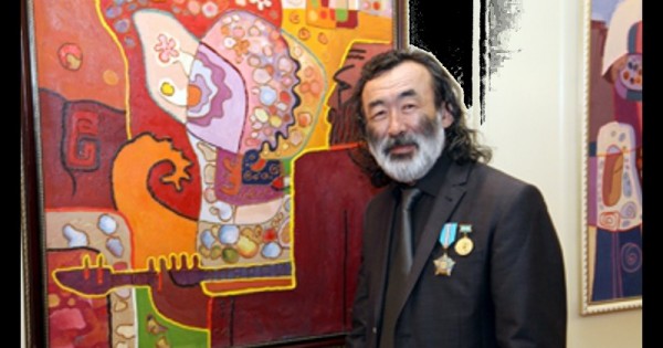 Суретте: марқұм Ғалым Қаржасов және оның картиналары