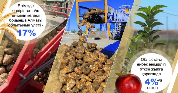 Осы жерде аймақтағы негізгі өндіріс көзі агроөнеркәсіп кешені екенін айтқан ләзім. Бұл бағыттағы жұмыс қарқынды. Атап айтқанда, республика көлемінде өндірілген ауыл шаруашылығы өнімінің көлемі бойынша Алматы облысының үлесі 17 пайызды құрап, өңірлер арасында бірінші орыннан көрінді. Осы еселі еңбектің көрінісін біз аймақтың бірнеше ауданына барған сапарымызда анық байқаған едік.