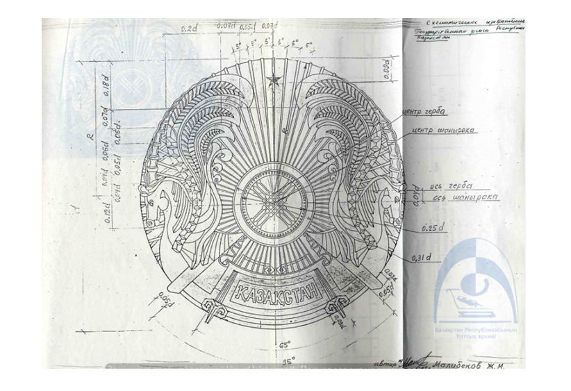 Қазақстан Республикасының Мемлекеттік Елтаңбасы – дөңгелек пішінді және көгілдір түсті шаңырақ түрінде бейнеленген, шаңырақтан шыққан уықтар күн сәулесін еске салады. Оң жағы мен сол жағында аңыздардағы қанатты пырақтар бейнесі орналасқан. Жоғарғы бөлігінде – бес бұрышты көлемді жұлдыз, ал төменгі бөлігінде «Қазақстан» деген жазу бар. Қазақстан Республикасы Мемлекеттік елтаңбасының авторлары – белгілі сәулетшілер Жандарбек Мәлібеков пен Шот-Аман Уәлиханов.