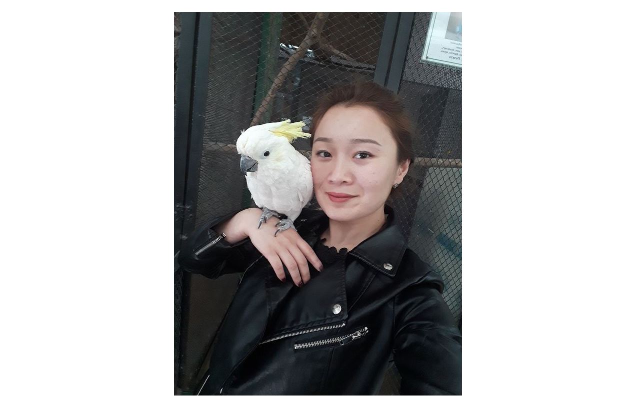 «مەن 2018 جىلى بقمۋ-دى ءبىتىرىپ سول جىلى وبلىستىق ءبىلىم باسقارماسىنىڭ ەكولوگيالىق-بيولوگيالىق ورتالىعىنا قوسىمشا ءبىلىم بەرۋ پەداگوگى بولىپ جۇمىسقا ورنالاستىم. زووباقتى ارالاپ جۇرگەن كەزىمدە ءبىر اقىرعان اششى داۋىستى ەستىدىم. ول نە ەكەن دەپ جۇگىرىپ بارسام, اق ءتۇستى, ءىرى دەنەلى, باسىندا سارى ءتۇستى ايدارى بار توتىقۇس ەكەن. ەسىمى – روزيتا. قىزىعۋشىلىعىم ويانىپ, ورتالىعىمىزدىڭ جانۋارلار مەڭگەرۋشىسى تاتيانا نيكولاەۆنادان انىقتاپ سۇراسام, 2018 جىلى قاڭتار ايىندا الماتى قالاسىنىڭ زووباعىنان الدىرتىلعان ەكەن. سودان روزيتامەن جاقىن تانىسقىم كەلدى. كۇندە جۇمىسقا كەلگەندە, شىققان كەزدە باقىلاپ, قىزىعا قاراپ كەتەمىن. ول كەزدە تەك اقىرىپ, جانىنداعى توتىقۇستارعا مازا بەرمەيتىن ەدى. كۇندەردىڭ كۇنىندە توردان الىپ قولىما ۇستاپ ءجۇردىم. ءوزى قاناتىنىڭ استىن سيپاعاندى قاتتى جاقسى كورەدى. كىتاپ بەتتەرىن اقتارىپ بۇل قۇس تۋرالى تاعى دا كوپتەگەن دەرەكتى بىلگىم كەلدى. بۇل قۇس ادامشا سويلەي الاتىنىن وقىعان كەزدە قاتتى قۋاندىم. ادەتتە توتىقۇستاردى كىشكەنتاي كەزىنەن باستاپ ۇيرەتۋ كەرەك ەكەنىن بىلە تۇرا, بالكىم قولىمنان كەلەر دەگەن ويمەن روزيتاعا كۇندە ءبىر ءسوزدى قايتالاي بەردىم. ارينە باسىندا وتە قيىن بولدى. سەبەبى زووباققا كەلۋشىلەر كوپ. ولاردىڭ كوزىنشە مەنىڭ ءبىر ءسوزدى قايتالاپ تۇرۋىم ىڭعايسىزداۋ بولدى. روزيتاعا العاشقىدا «سالەم» دەگەن ءسوزدىڭ ورىسشاسىن ۇيرەتتىم. باسىندا انىق بولماسا دا قايتالاي بەرگەسىن انىق ايتا باستادى. مەن بۇعان قاتتى قۋاندىم», دەيدى ول.