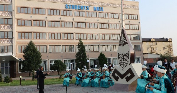 "تاراز يننوۆاتسيالىق-گۋمانيتارلىق ۋنيۆەرسيتەتىنىڭ وقىتۋشىلارى مەن ستۋدەنتتەرىنىڭ قولداۋىمەن جاتاقحانا الدىنداعى ساياباقتان "دومبىرا" ەسكەرتكىشى اشىلىپ وتىر. ۋنيۆەرسيتەتتە وقىپ جۇرگەن جاستار دومبىرانىڭ توگىلگەن كۇيى مەن جىرى ارقىلى وزدەرىنە كۇش-جىگەر مەن ساپالى ءبىلىم الا الادى. حالقىمىزدا مىقتى كۇيشىلەردىڭ بولعانى بارشامىزعا تاريحتان بەلگىلى. بۇگىندە سونداي تالانتتاردىڭ ونەرىن جالعاستىرىپ كەلە جاتقان ەلىمىزگە تانىمال كۇيشى ءابدىمومىن جەلدىباەۆتىڭ ءبىر كۇيىنىڭ ءوزى الەمگە تارالىپ, دۇنيەجۇزى قازاق دەگەن ۇلت پەن قازاقستان دەگەن مەملەكەتتىڭ بار ەكەنىن ءبىلدى. سونىمەن قاتار بۇگىنگى جاستارىمىز دا دومبىرا ونەرىن جالعاستىرىپ, ناسيحاتتاۋ ۇستىندە. وسى ورايدا, اقىن قادىر مىرزا ءالى اعامىز "ناعىز قازاق قازاق ەمەس, ناعىز قازاق – دومبىرا!" دەگەن. بۇل ءسوز تەككە ايتىلماسا كەرەك. سەبەبى جەر بەتىندە دومبىرا سەكىلدى اسپابى بار ۇلتتار نەكەن-ساياق. سوندىقتان ءبىز, بۇگىنگى ۇرپاق بابالارىمىزدىڭ الدىندا باسىمىزدى ءيۋىمىز قاجەت", دەدى بەردىبەك ساپارباەۆ.