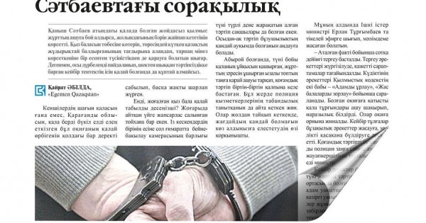 Еске салар болсақ, биылғы 23 шілдеде Сәтбаев қаласында елді елең еткізген қылмыстық оқиға болған еді. Кеншілердің шағын қаласындағы көпқабатты үйлердің біріндегі аулада жүрген бес жасар қыз бала кешке қарай ұшты-күйлі жоғалып кеткен болатын. Бұл суыт хабардан құлақтанған қала жұрты тәртіп сақшыларымен бірге қаланы тінтіп, іздеуге атсалысқан еді. Жоғалған бала екі-үш сағаттан кейін әлгі үйдегі пәтерлердің бірінен табылды. Сөйтсе, кішкентай қызды азғын еркек аузын скотчтап, үйде тығып ұстап отырған екен...