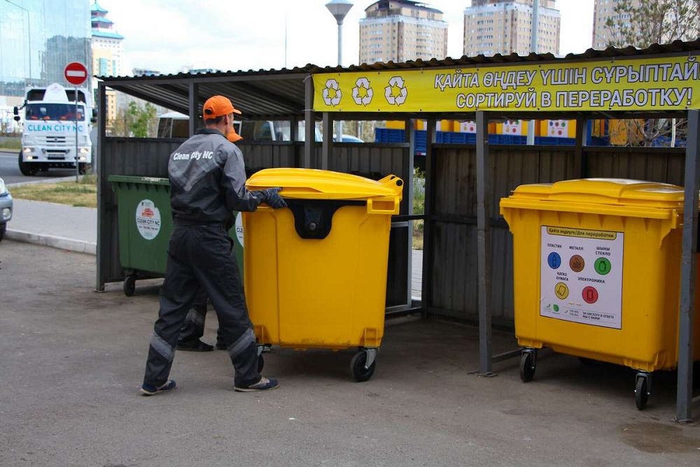 2018 жылы елордада қалдықты сұрып­­тау жобасы қолға алынды. Нұр-Сұлтан қала­сы бойынша 6 276 сары түсті кон­тей­нер қойылды. Сары түсті кон­тей­нер – қағаз, картон, пластик, шыны қал­дық­тарын тастауға арналған. Жасыл түсті кон­­т­ей­нерге қайта өңдеуге жара­май­тын қал­­дық­тар салынады. Сары контейнер­дегі қал­дықтарды арнайы машина алып кетеді. Нұр-Сұлтан қаласынан шығатын қал­дық­тар қоқыс өңдейтін зауытқа жеткізіледі.