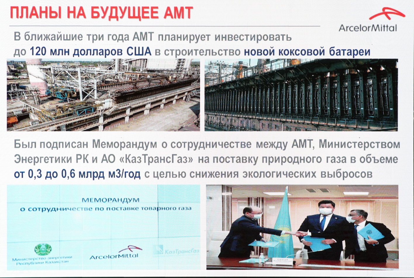 «ارسەلورميتتال تەمىرتاۋ» اق باس ديرەكتورى ناير بيدجۋ مەملەكەت باسشىسىنا كاسىپورىندى ودان ارى دامىتۋ پەرسپەكتيۆاسى, جاڭا كوكس باتەرياسى قۇرىلىسىنىڭ جوسپارى, ەكولوگيالىق قالدىقتاردى ازايتۋ جونىندە قابىلدانىپ جاتقان شارالار جايىندا مالىمەت بەردى.