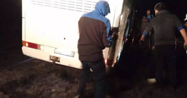 Шығыс Қазақстан облысы Абай ауданы Тоқтамыс ауылынан 20 шақырым жерде Қоңыр әулие үңіріне бара жатқан жолда автобус батбаққа батып қалды. Жауынның астында қалған 40 жолаушыға жедел жеткен құтқарушылар тобы автобусты сүйреп шығарып, дер кезінде көмек көрсеткен. Жолаушылар өз бағыттарымен аман-есен сапарларын жалғастырды. Зардап шеккендер жоқ.