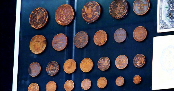 Екатерина II-нің тұсындағы көне тиынды балықшылар тауып алған. Зейнеткер Жұмахан Тамабеков Сарысу өзенінің бойында жауынқұрт қазып жатқан кезде байқап қалады. Мыстан құйылған бес тиын 1766 жылы жасалыпты. Үш ғасырға жуық жер астында жатқан тиынның беті аздап шіріген. Дегенмен, суреті мен жазуы сақталыпты. Зейнеткер жәдігерді музейге әкеліп тапсырды.