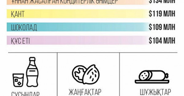 – Импорттық азық-түлік өнімдерінің негізгі жеткізушісі – Ресей. Ол жақтан шетелдік азық-түлік өнімдерінің жартысы импортталады. Басқа импорттаушы елдердің ішінде Өзбекстанның үлесі – 7,4%, Беларусь пен Қытайдың үлесі 5% және 4,9% аралығында, – дейді М.Алмағамбетова.