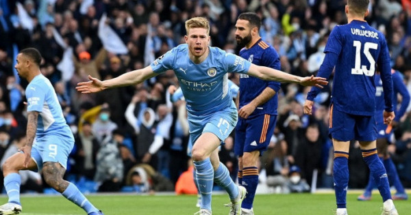 ەكىنشى كەزەڭ دە «مانچەستەر ءسيتيدىڭ» دامىلسىز شابۋىلىمەن باستالدى. 53-مينۋتتا فيل فودەن مەرگەندىك تانىتتى – 3:1. الايدا مادريدتىكتەر ەش ساسقان جوق. كوزدى اشىپ-جۇمعانشا بىرنەشە قورعاۋشىنىڭ اراسىنان سىتىلىپ شىققان ۆينيسيۋس جۋنيور ەسەپ ايىرماشىلىعىن قىسقارتتى – 3:2. 74-مينۋتتا بەرناردۋ سيلۆا كەرەمەت گول سوقتى – 4:2. 81-مينۋتتا «رەالدىڭ» شابۋىلىنان كەيىن دوپ ايمەريك لاپورتتىڭ قولىنا ءتيدى. تورەشى ەش ويلانباستان 11 مەترلىك نۇكتەنى مەڭزەدى. بەنزەمانىڭ سوققىسىنا تيبو كۋرتۋا توسقاۋىل بولا المادى – 4:3. ەندى قارىمتا ماتچ 5 مامىردا مادريدتە وتەدى.