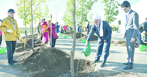 Әлемдік және дәстүрлі діндер лидерлерінің VII съезі делегаттары ағаш егуге белсенді атсалысып, өз ойларын ортаға салды.