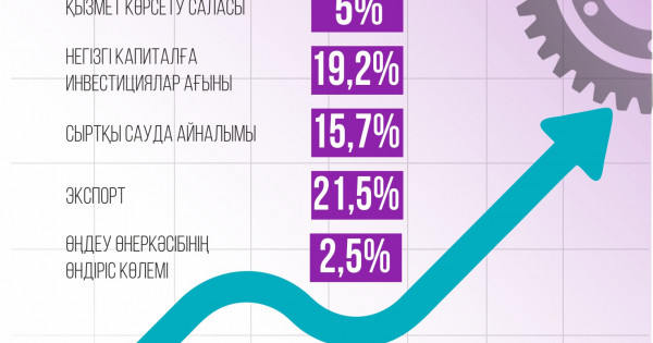 Ұлттық экономика министрі Әлібек Қуантыровтың айтуынша, есептік кезеңде Қазақстан экономикасының өсу қарқыны 4,3%-ды құрады. Оның ішінде, нақты сектор 2,7%-ға, қызмет көрсету саласы 5%-ға өсті. Барлық негізгі салалар құрылыс, ақпарат және байланыс бойынша оң динамика байқалады, сондай-ақ сауда ең үлкен өсімді көрсетті. Негізгі капиталға инвестициялар ағыны 19,2%-ды құрайды.
