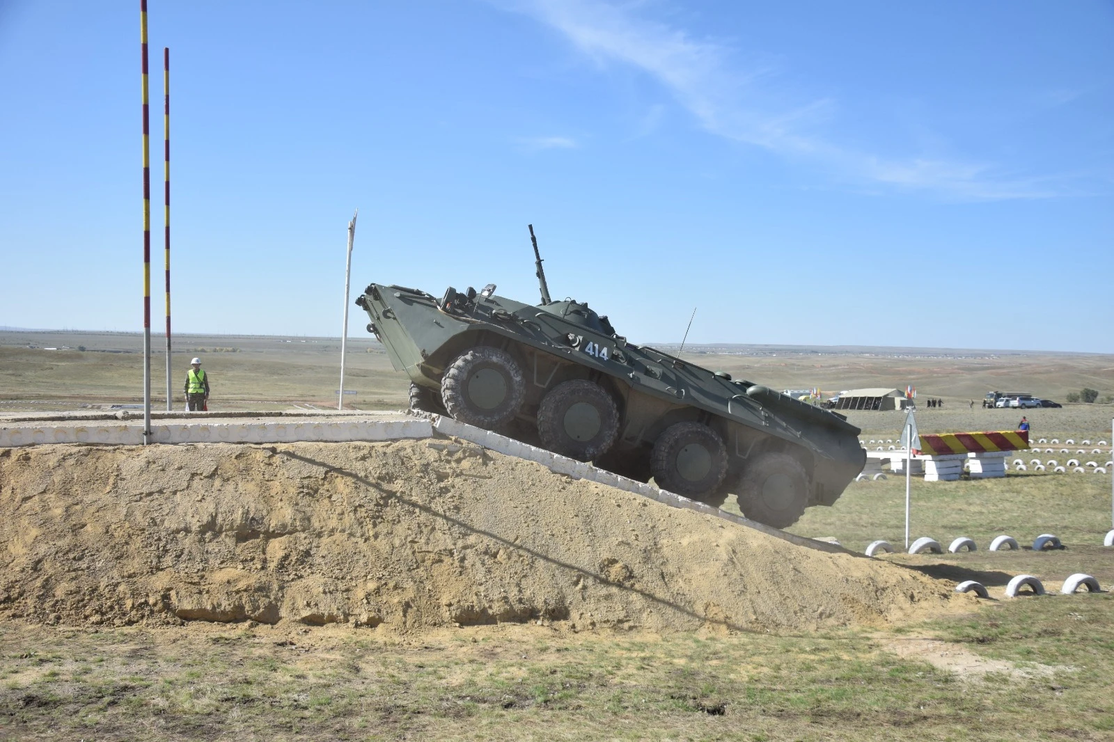 Содан кейін кедергілер жолағына БТР экипаждары шықты. Бұл жарыстардың ерекшелігі – экипаждар бір-бірімен үнемі жұмыс істемейді. Олардың құрамында келісімшарт бойынша әскери қызметшілер де, арнайы дайындықтан өткен және осындай күрделі техникаға жіберілген мерзімді сарбаздар да бар. Экипаждар БТР-ге қарсы қолданылатын арық, «жылан», көтерме көпір, миналанған өткел, габаритті аула, габаритті «сегіздік», тік көтерілу және түсу, теміржол өткелі, аппарель, косогор сияқты кедергілерді еңсерді.