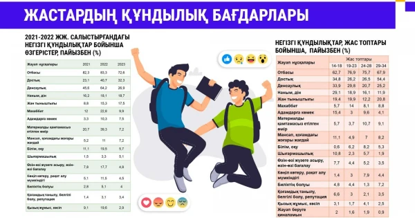 «بيىل جاستاردىڭ شەكتى جاسىنىڭ 35-كە دەيىن ۇلعايۋى ەسكەرىلە وتىرىپ الەۋمەتتانۋلىق زەرتتەۋلەرگە سۇيەنىپ, جاستار پورترەتى جاسالدى. بۇل پورترەت دەنساۋلىق, ءبىلىم, جۇمىسباستىلىق, قۇندىلىقتار, قاۋىپسىزدىك, ازاماتتىق جانە ساياسي بەلسەندىلىك سياقتى اسپەكتىلەر بويىنشا جاستاردىڭ بەينەسىن بەرەدى», دەيدى ماماندار.