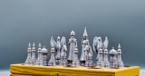 Ерлі-зайыптылар ұлттық үлгідегі шахматты полилактид деп аталатын материалдан жасап шығарған.