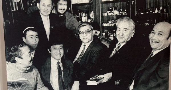 Суретте: төменгі қатарда сол жақтан Тойболды Зей­нәбілов, Талғат Айтбай, кө­зілдірікті кісі Түркиядан келген кәсіпкер. Жоғарғы жақта солдан оңға қарай Қазақстан діни басқармасы төрағасының орынбасары Асылхан (тегін білмей отырмыз), белгілі әдебиетші ғалым Мардан Байділдаев, Асылханның жүр­гізушісі және оң жақта ең шеткі академик  Ешімбет Байбарақов (әрине, мұндай дәрежеге кейін жетті ғой). Бұл жерде барлығының басы кездейсоқ түйісіп қалған екен – басқалар да халқымыздың қадірлі перзентіне сәлем беруге барған ғой.