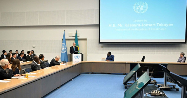 «Мен білімнің және халықаралық деңгейдегі академиялық ықпалдастықтың дамуына айрықша мән беремін. Әсіресе, әлемнің өзгеруін жеделдететін бастамаларды қолдаймын. Бұл басымдықтар БҰҰ университетінің миссиясына толық сай келеді. Биыл Қазақстанда Орталық Азия және Ауғанстанға арналған БҰҰ орнықты даму орталығы ашылды. Қазақстан осы алаңның негізінде Алматыда БҰҰ университетінің өңірлік филиалын құруға әзір. Оның қызметін, ең алдымен, су және климат қауіпсіздігі, қақтығыстарды реттеу, бітімгерлік, орнықты даму мен жасанды интеллектіні басқару мәселелеріне бағыттауға болады», деді Қасым-Жомарт Тоқаев.
