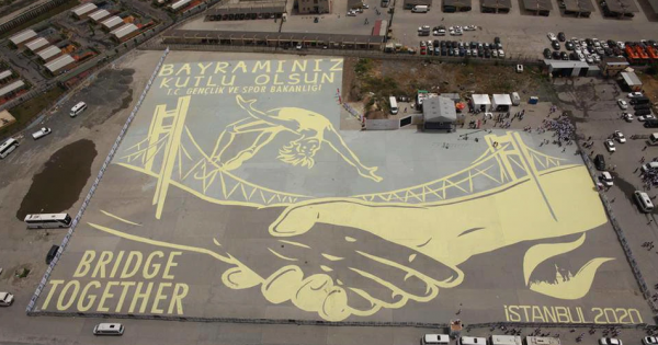 Суреттің өзі де кездейсоқ таңдалмаған. Guinness жазбасында композицияда әйгілі Босфор көпірі және биіктікке секіріп тұрған спортшы бейнесі болғаны айтылады. Бұл екі образдың да мәні бар. Бірі қала мен құрлықты жалғайтын көпірді көрсетеді. Екіншісі адамның биік мақсатқа ұмтылуын білдіреді.