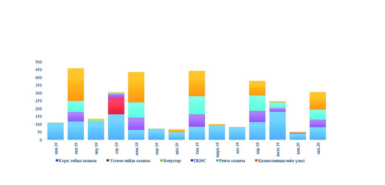 Қазақстан қаржыгерлер қауымдастығының хабарлауынша, 2020 жылдың қаңтар-ақпан айларында Ұлттық қорға түскен түсім 363,2 млрд теңгені құрады, бұл өткен жылдың сәйкес мерзімімен салыстырғанда 37,8%-ға немесе 220,7 млрд теңгеге төмен. Ұлттық қорға айлар бойынша түсімдер, млрд теңге: