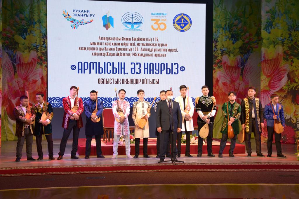 «Армысың, әз Наурыз!» атты облыстық деңгейдегі дәстүрлі ақындар айтысы өтті. Жыр додасында Қарағанды, Теміртау, Сәтбаев қалалары мен Бұқар жырау, Қарқаралы және Нұра аудандарынан келген алты жұп ақын бақ сынады.