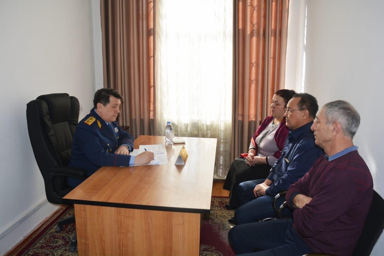 Жамбыл облыстық Полиция департаментінің бастығы, полиция генерал-майоры Жанат Сүлейменов Қордай ауданында болып, азаматтарды жеке сұрақтары бойынша қабылдады. Ауданда орын алған соңғы жағдайларға байланысты өңірдің бас полицейі тұрғындардың түрлі мәселелерін тыңдады.