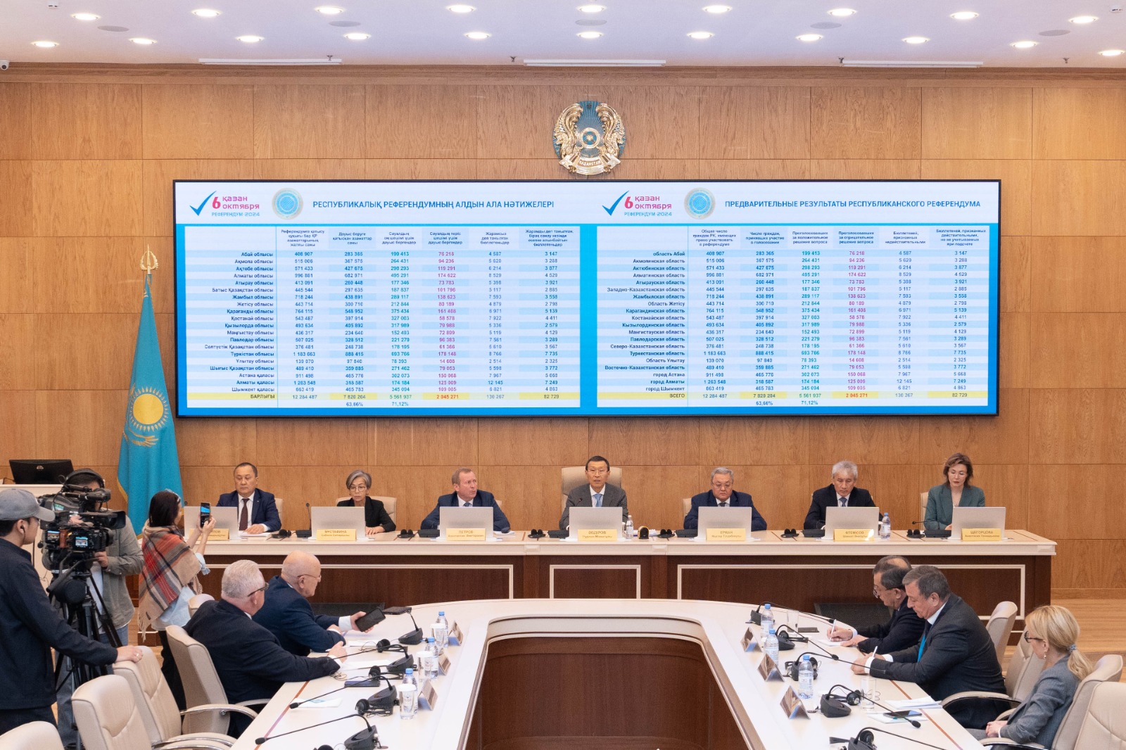 Орталық референдум комиссиясының төрағасы Нұрлан Әбдіров аумақтық референдум комиссияларының хаттамалары негізінде 6 қазанда өткен республикалық референдумның түпкілікті қорытындысын жариялады. Республикалық референдумның қорытындылары бойынша ОРК отырысына бейнеконференция байланысы режімінде облыстардың, Астана, Алматы және Шымкент қалаларының аумақтық референдум комиссияларының төрағалары мен мүшелері қатысты.